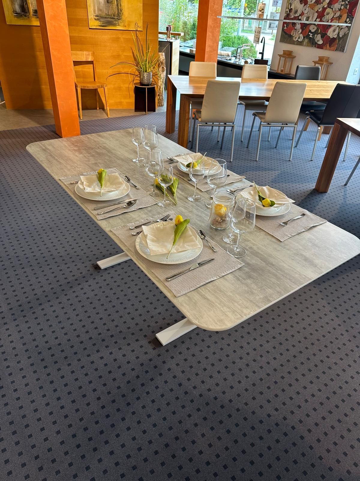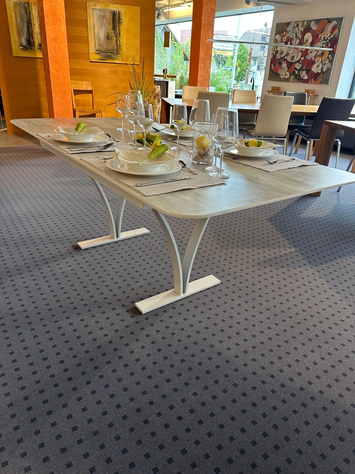 Auszugtischbeschlag synchron, Tischfüsse edelstahl grau einbrennlackiert